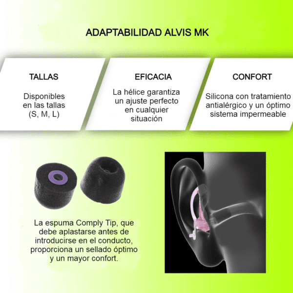 Closed position: The superior seal provided by Comply Tip foams allows a level of sound attenuation equivalent to that of a custom moulded resin earplug, while retaining the flexibility and comfort of the Mk range. Some foam earplugs have higher attenuation levels, but these levels are achieved with overly rigid foams that do not stay in place for long periods of time and are uncomfortable to wear. The noise attenuation values according to EN352:2 are: