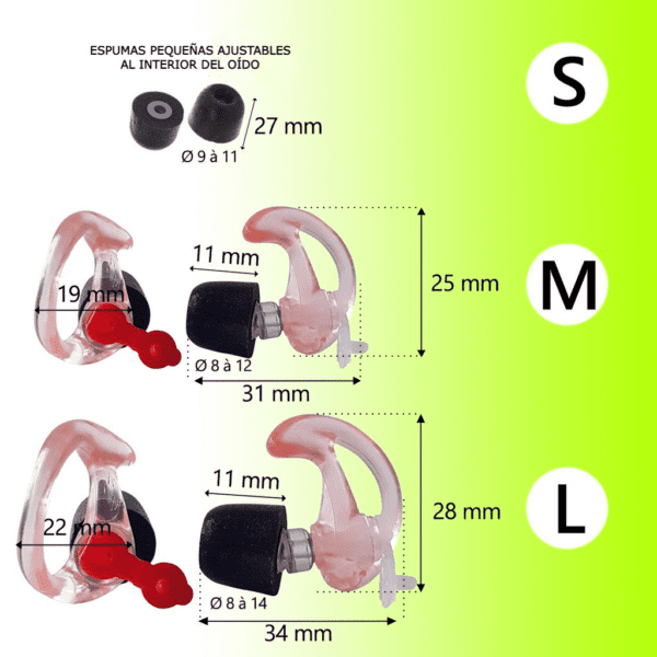 Measure the size of the concha of your ear as shown in the pictures above. The concha is the hollow part of the ear where the helix of the earplugs will be placed. Up to 2.5 cm: size M and over 2.5 cm: size L.